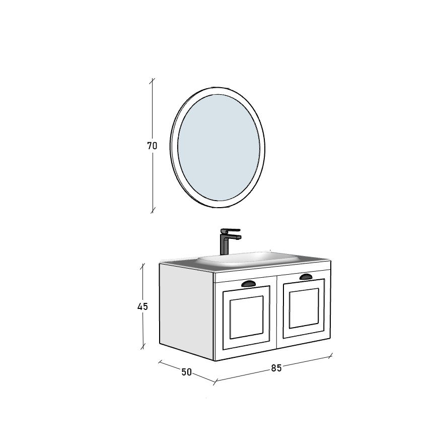 Ürün içeriği : Alt modül + Üst modül + Lavabo