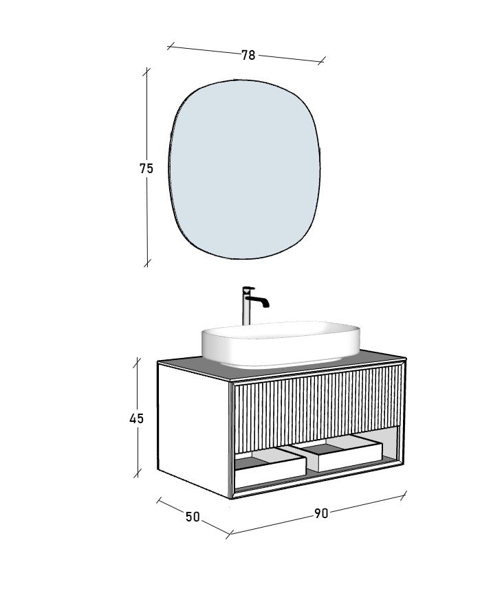 Ürün içeriği : Alt Modül + Üst Modül + Lavabo